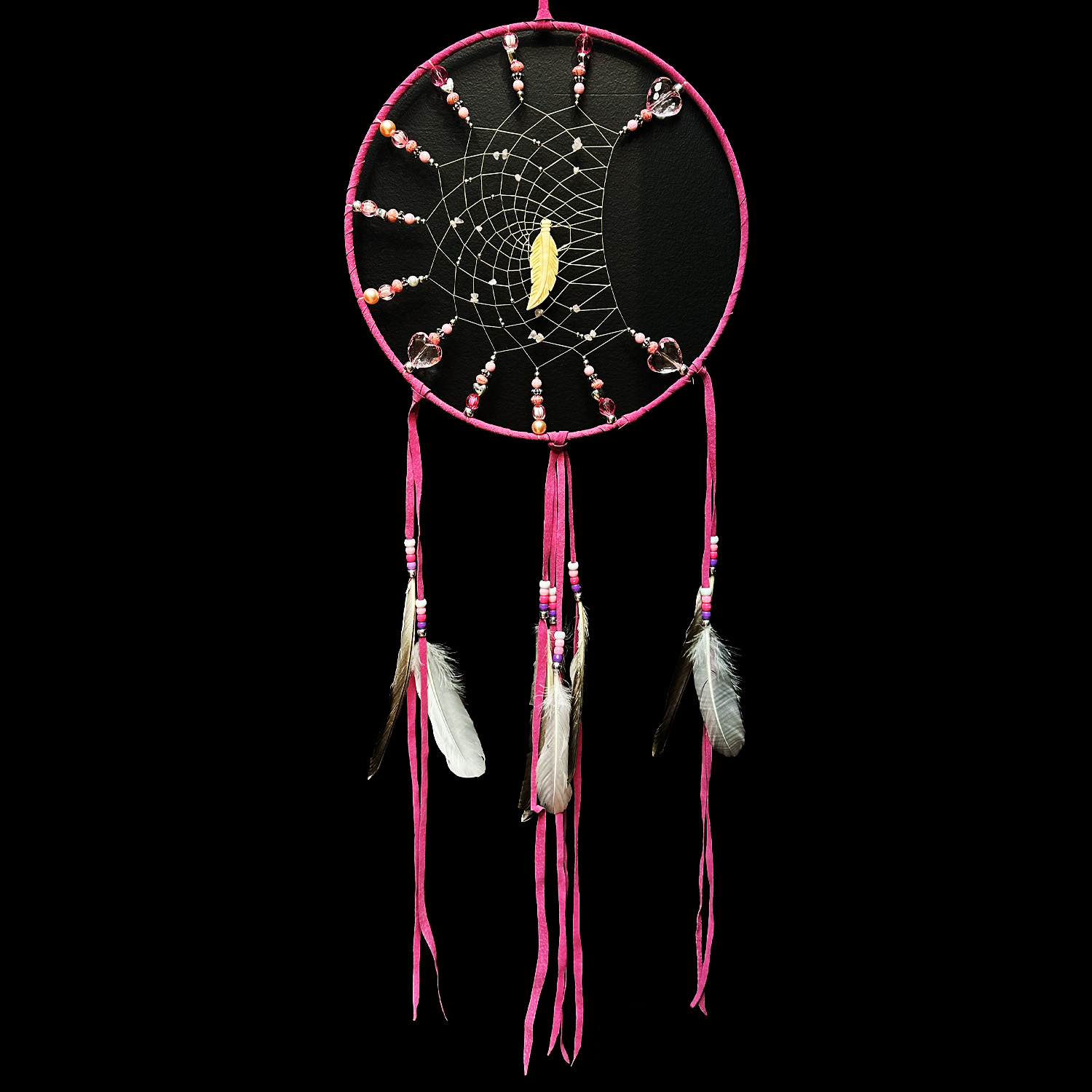 Home / Shop Our Galleries / North Vancouver Gallery / 12″ Pink Half Moon Dream Catcher