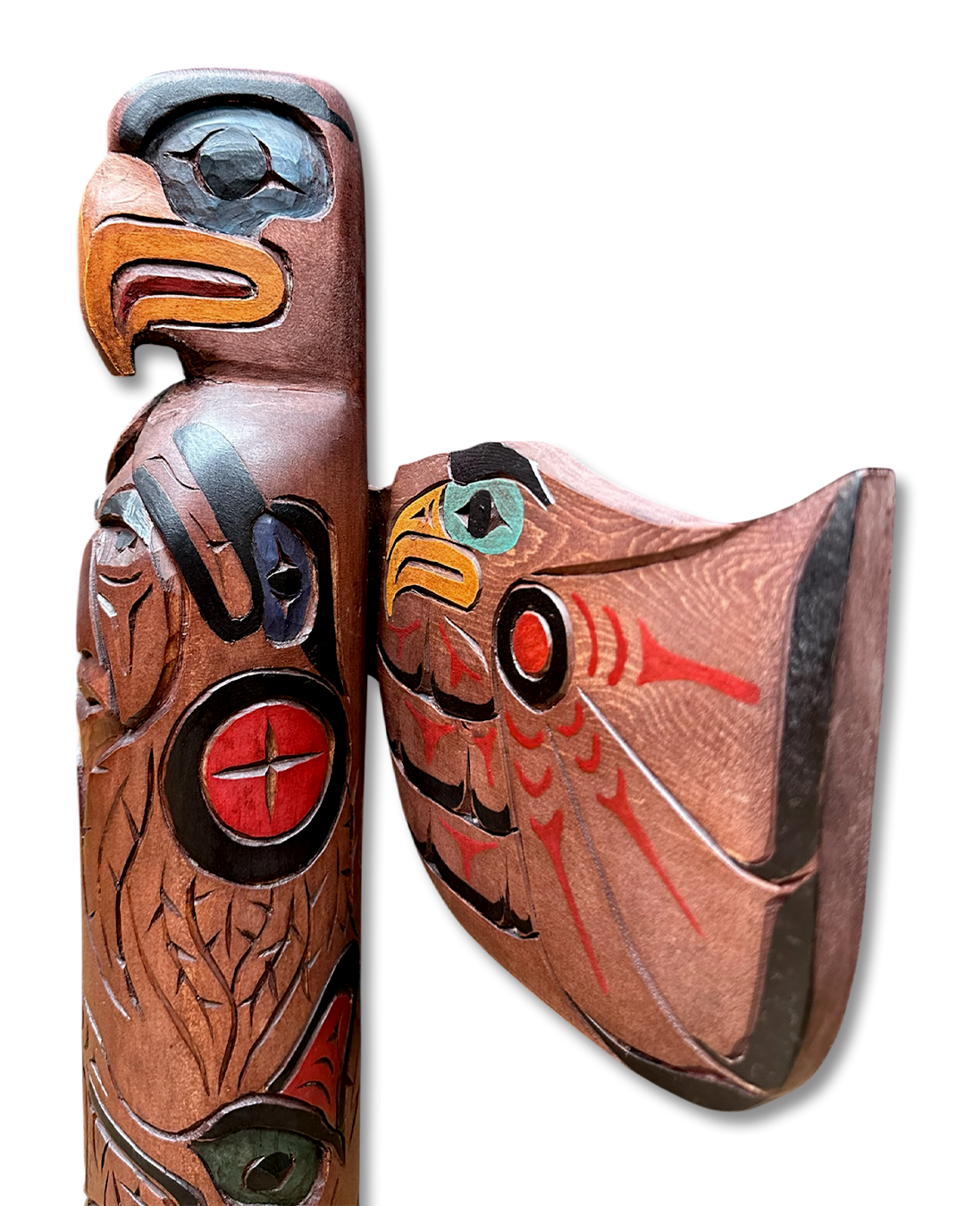 Home / Shop Our Galleries / North Vancouver Gallery / Wood Carvings / Sculptures / Table Sculptures / Eagle, Chief Wolf, Salmon Base, Whale, Salmon, Bear